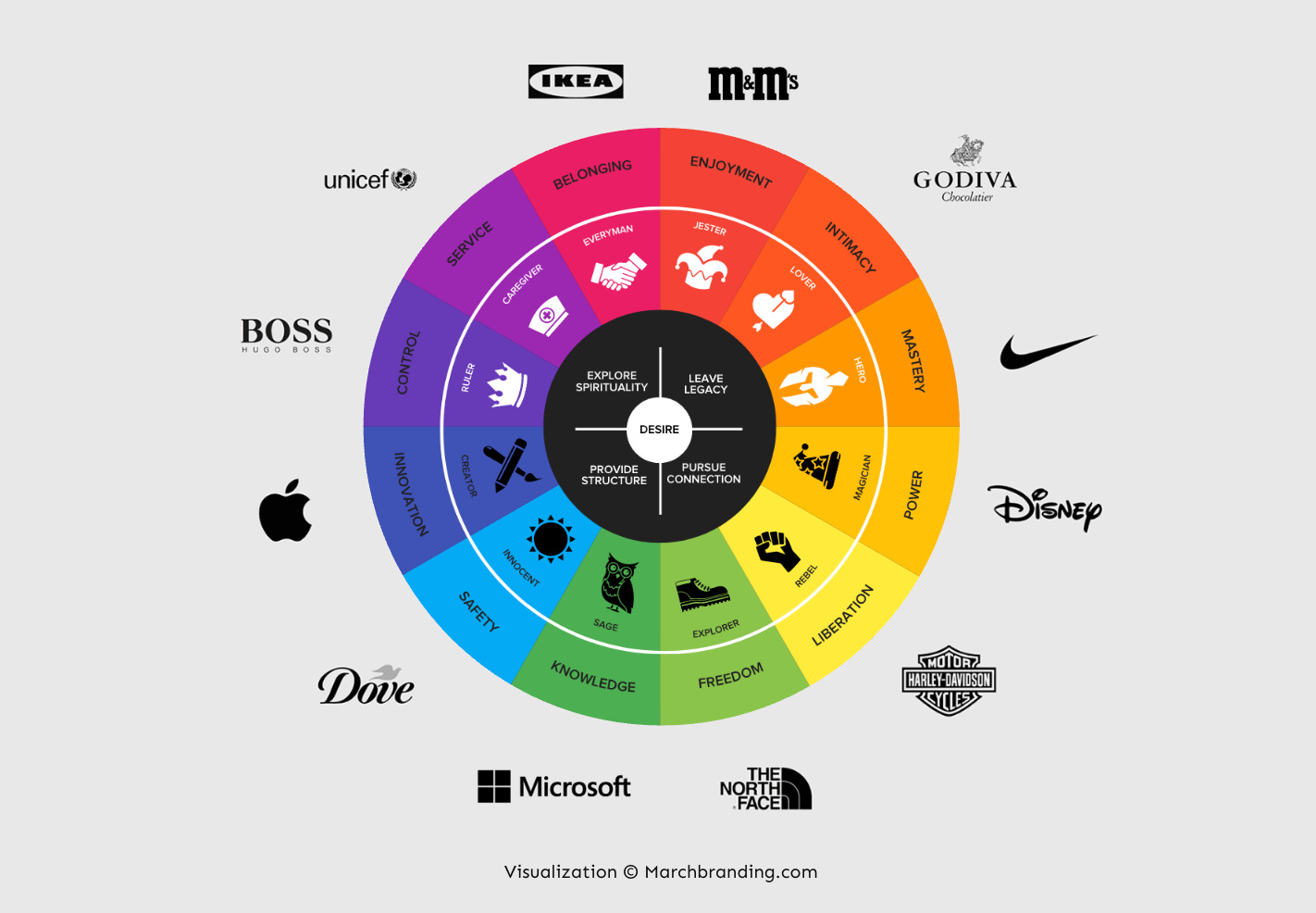 And then we transfer that to one of the 12 brand archetypes, as outlined in “The Hero and the Outlaw” by Margaret Mark & Carol S. Pearson.