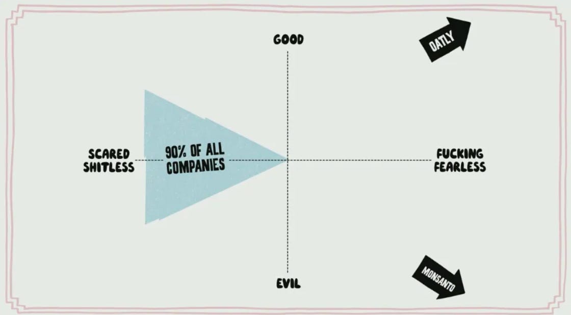 Or as my friend Carl-Emil Jensen, Head of Creative & Brand at Too Good to Go, once said to me about his own brand: